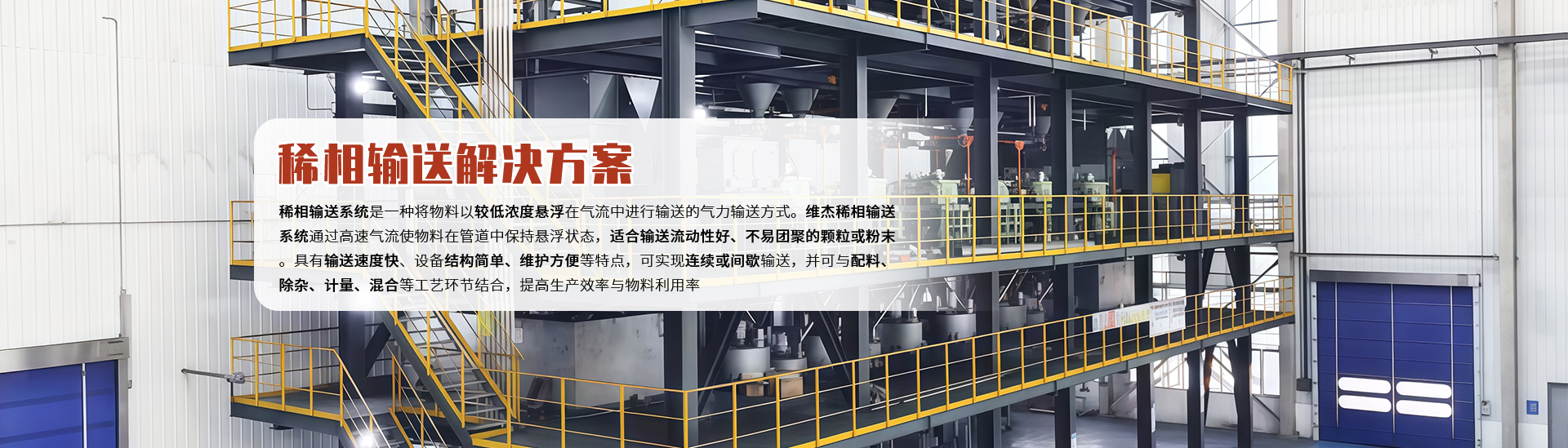 稀相输送系统是一种将物料以较低浓度悬浮在气流中进行输送的气力输送方式,系统通过高速气流使物料在管道中保持悬浮状态,适合输送流动性好、不易团聚的颗粒或粉末。具有输送速度快、设备结构简单、维护方便等特点。