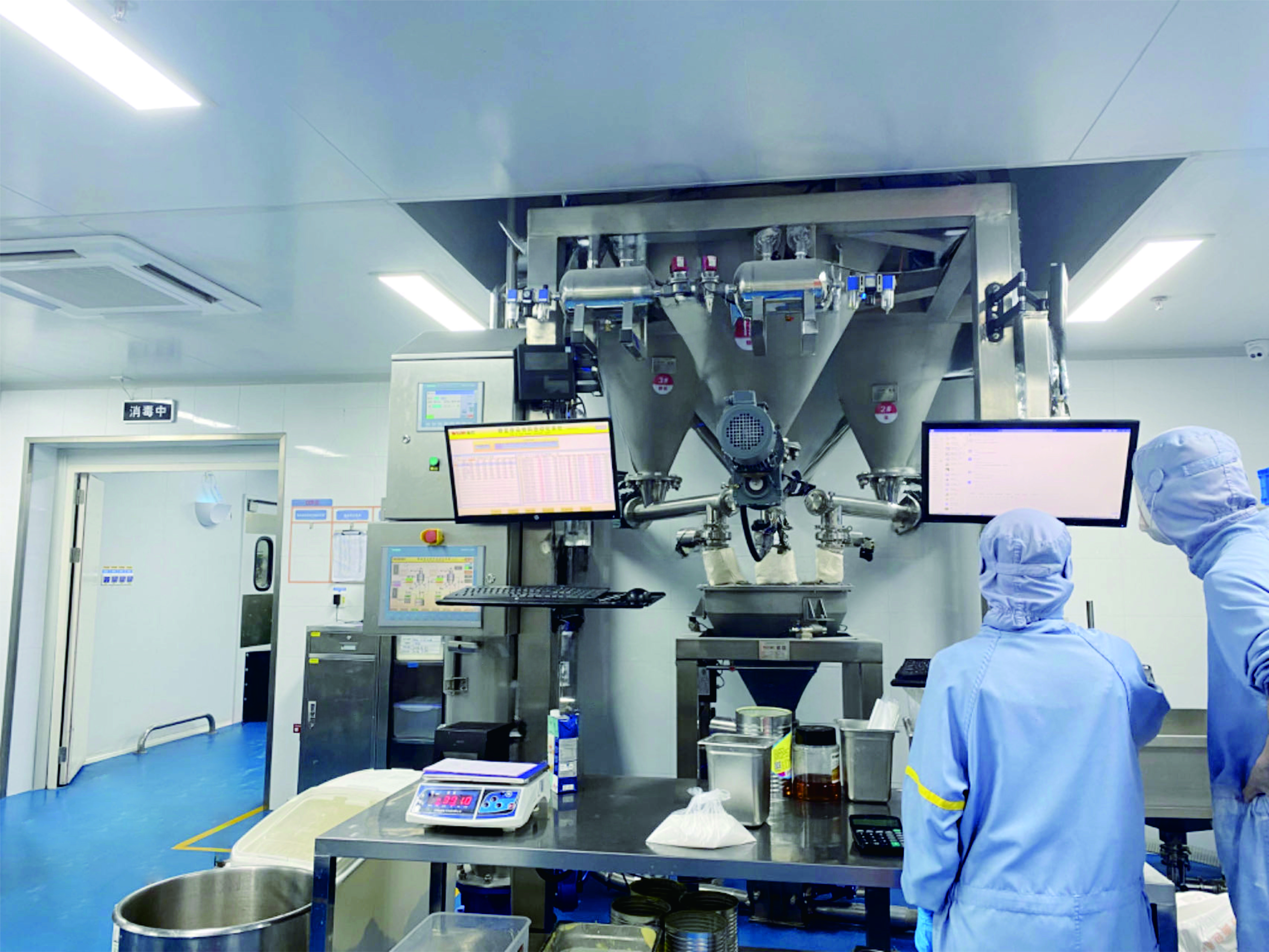 原料确认后,操作员将配料容器置于高精度称重台(精度±0.1g),系统自动去皮并进入称重模式。